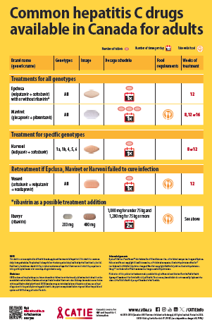 This chart is not a complete list of Health Canada-approved treatments for hepatitis C. This chart lists common daily dosing schedules. People should always follow the dosing schedule prescribed by their healthcare provider. Healthcare providers can check for drug interactions between hepatitis C treatment and other drugs a person is taking with a pharmacist or at www.hep-druginteractions.org.